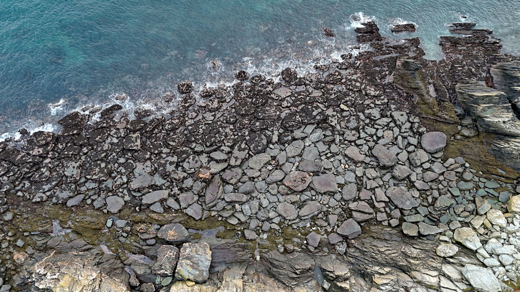 Giant flat boulders laying at the water's edge.