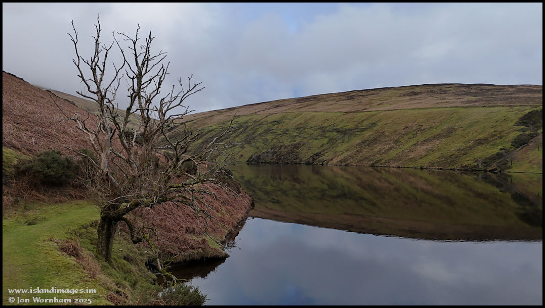 I'd walked from the main reservoir car park along the Sulby River arm of the reservoir, and rather perversly, decided to fly from next to the only tree around!