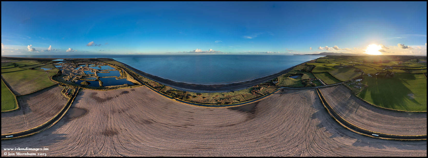 360 degree panorama at the former RAF Bride. Due to the way these panoramas are shot, the same white pickup truck appears twice in the finished product!