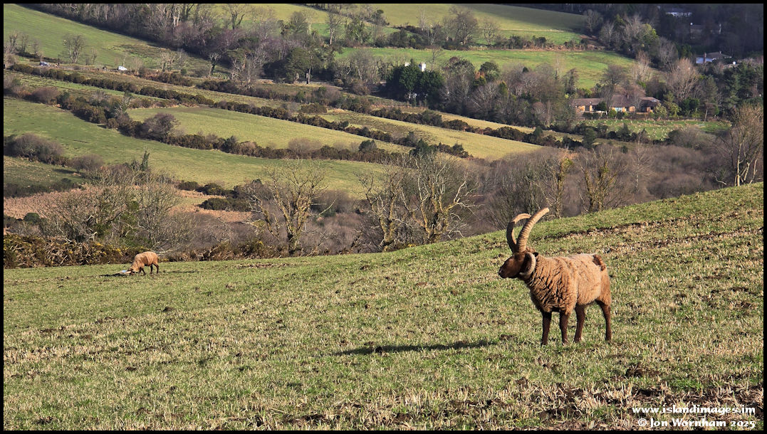 A Loaghtan ram wants to know who is walking past his hillside field!