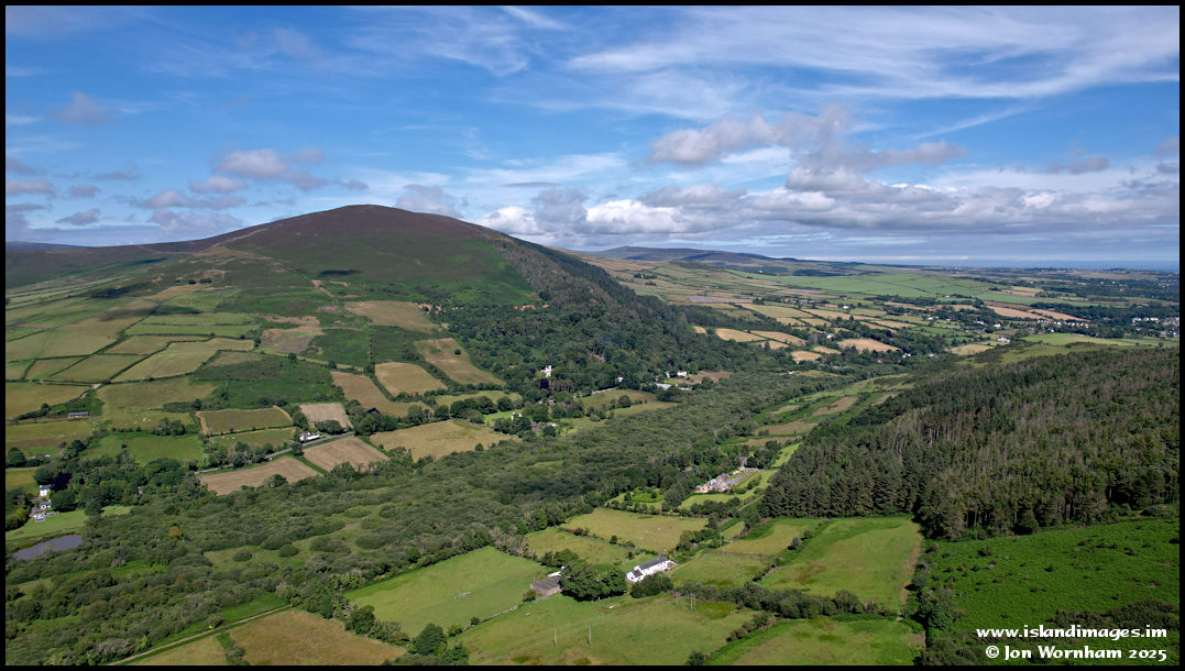 Turning the camera around to look down the central valley to the east, with Greeba rising above.