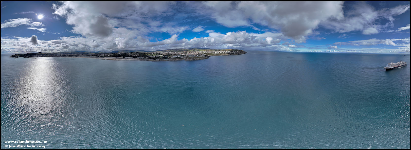 Interactive 360 degree panorama overhead Douglas Bay, featuring cruise ship 'Nieuw Statendam'.