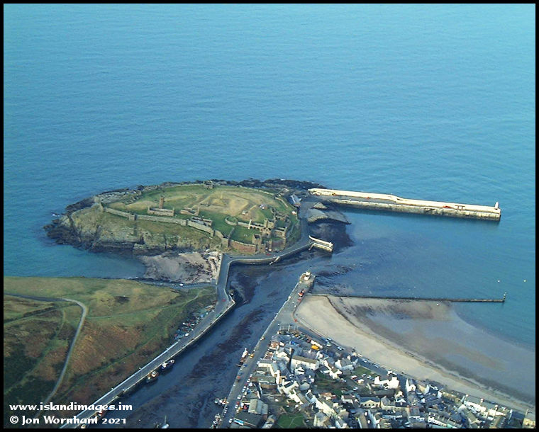 Peel Castle. Note no footbridge or tidal flapgate on the harbour.