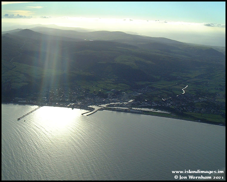 Still looking into sun, but more over Ramsey now, with the sun glinting off the harbour waters, Mooragh Park and the Sulby River.