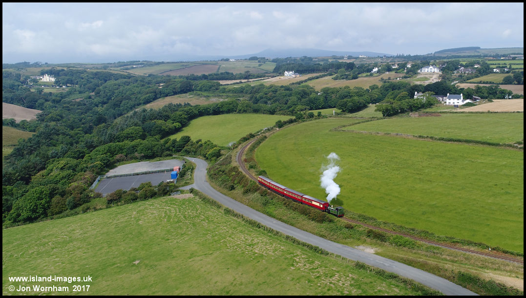 A train on the Isle of Man Steam Railway climbs away from Port Soderick station, heading