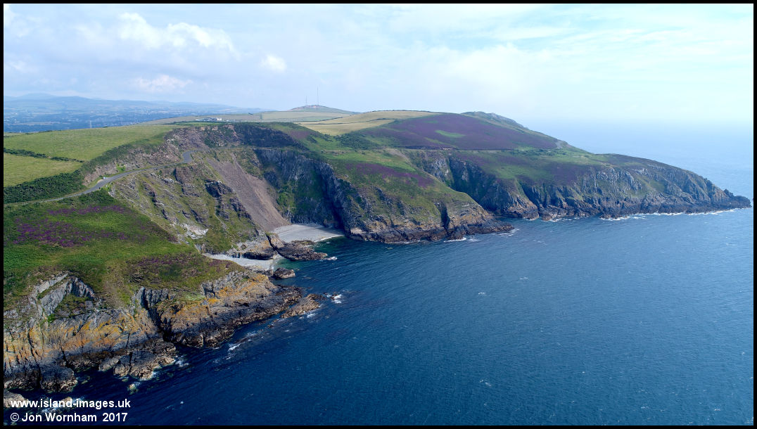 Looking north from Kerital, past the Whing,where the Marine Drive clings to the cliff face high above the sea.