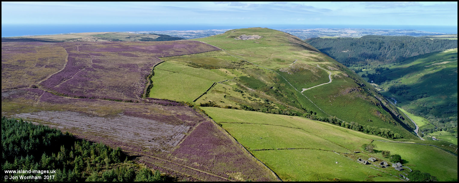 Contrasting colours on the hillsides above Sulby Glen