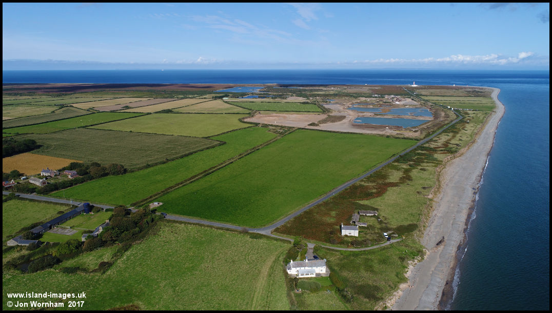 Looking northwards towards the Point of Ayre, the straight lane across the green field led to the radar station which occupied the present gravel extraction site and several of the fields to the left of it.