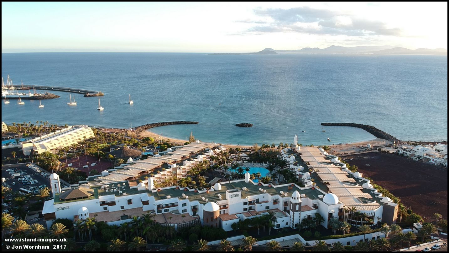 Looking across another of the large hotels to the island of Fuerterventura