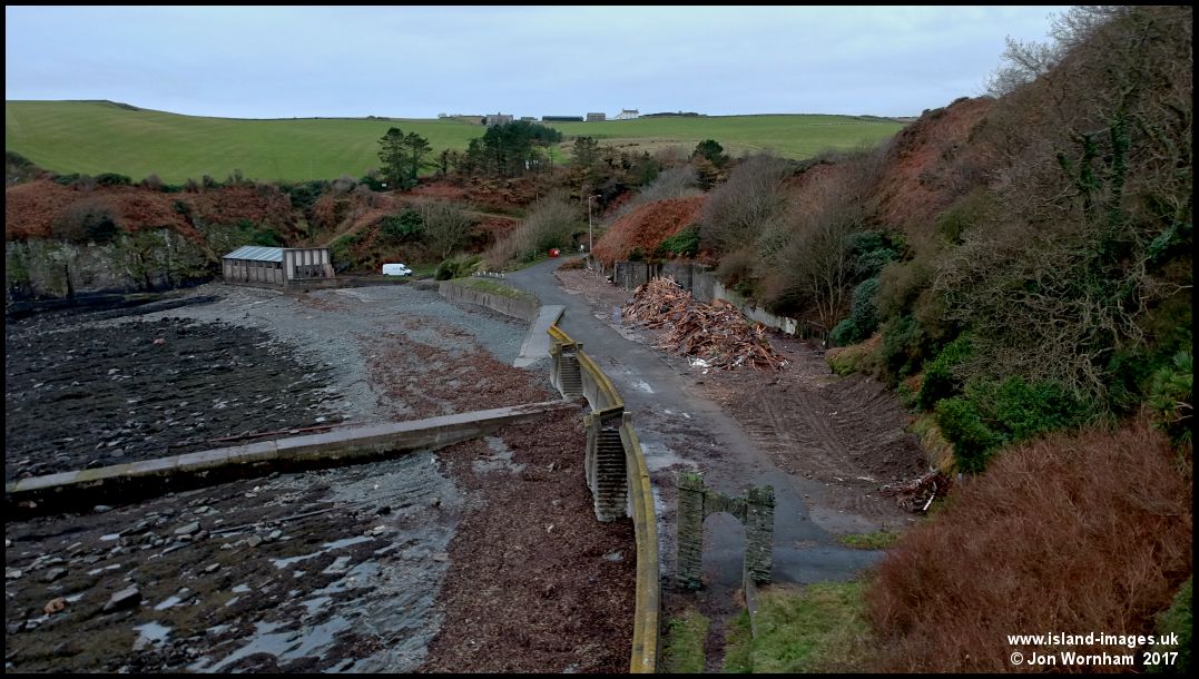 Port Soderick, where all that remains of the former cafe/pub buildings are two large heaps of wood. Fortunately the stone archway has been retained.