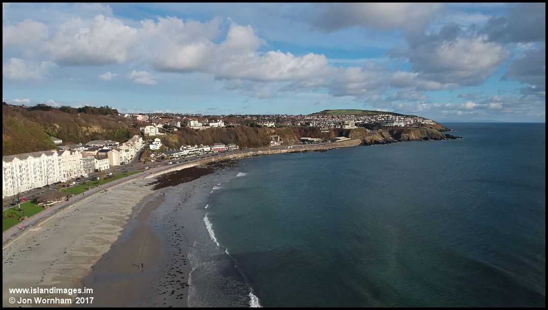 The north end of Douglas Promenade looking towards Port Jack, with the Cumbrian Mountains in England just visible on the horizon