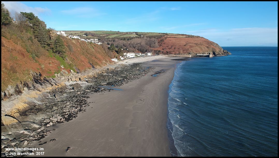 Higher over the beach with the houses of old Laxey starting to appear. This end of the beach is covered by water at high tide.