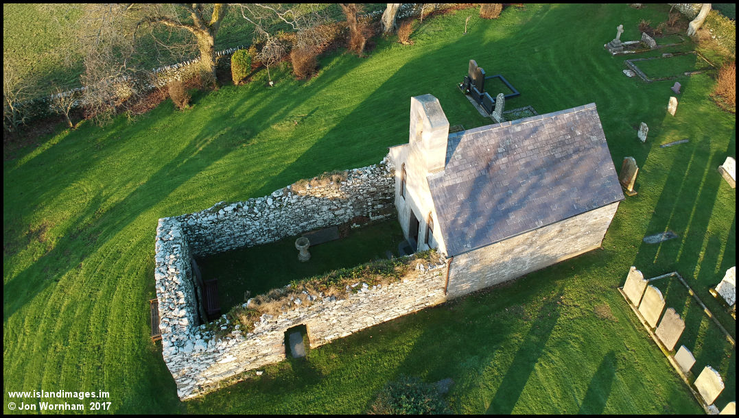 Looking down into the roofless section of St Adamnan's