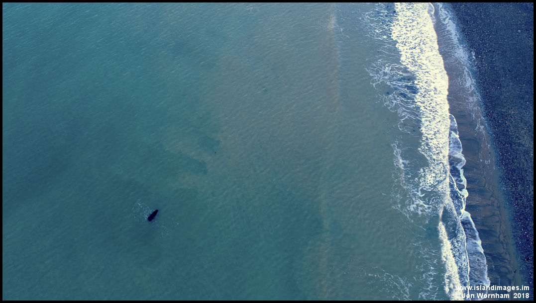 Looking down into a rather murky sea off Jurby Head, with just the top part of the 'S.T. Passages' shipwreck showing above the water