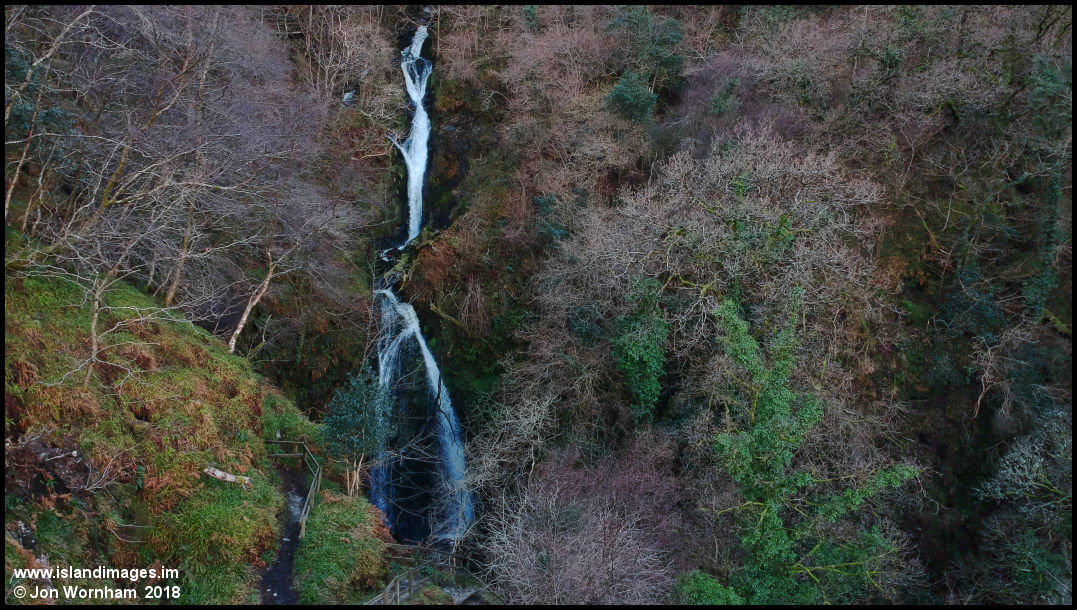 Using the DJI Spark again to get a view of the Dhoon Glen waterfall, the footpath can be seen at the bottom of the picture. Again, not a lot of flying space availabale due to the steep sided glen and trees.