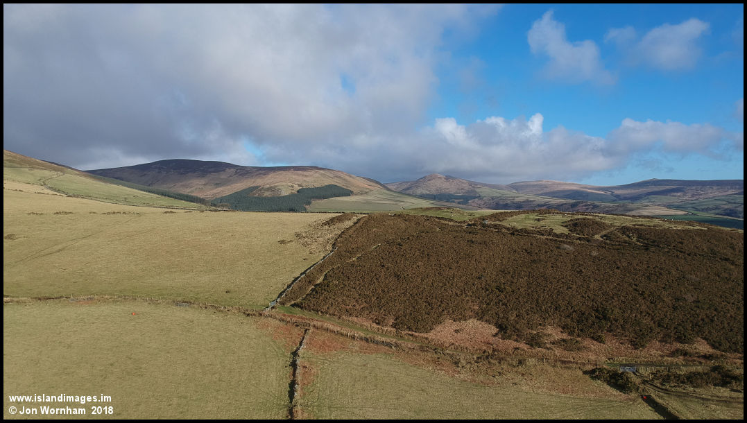 Flying a bit higher now, up to around 300ft to take in the view over Cronk Breck to the mountains.