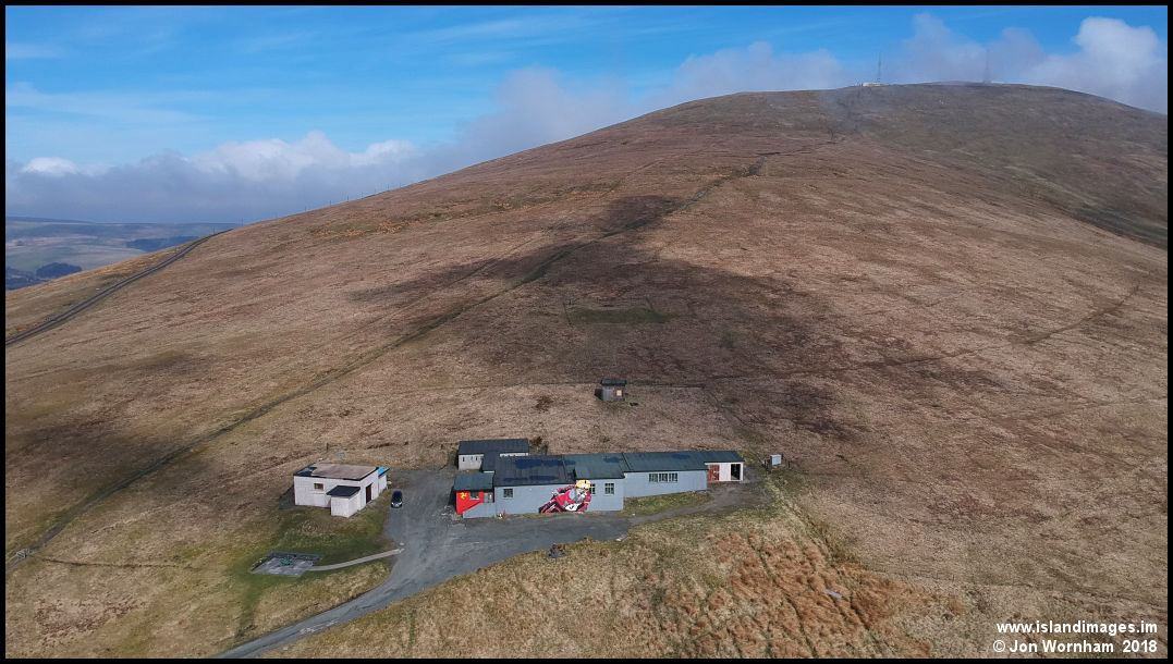 Snaefell, with the buildings of the Cold War radar station in the foreground.