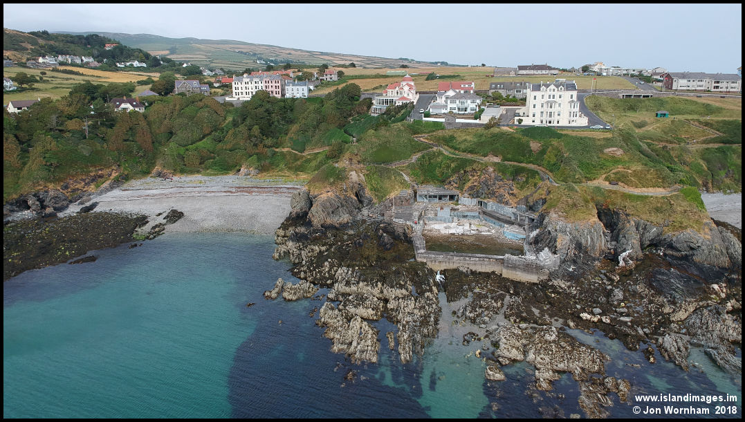 Spaldrick beach and the old sea water bathing pool at Port Erin.