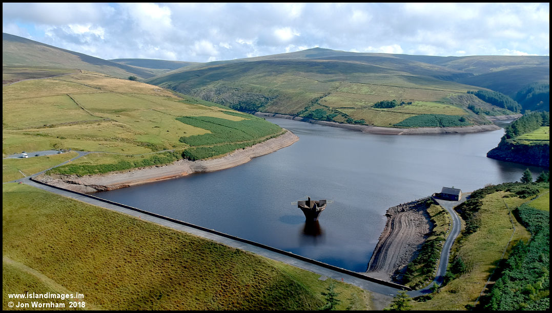 Moving location and looking over the dam to Sulby Reservoir. This is the island's largest and newest reservoir and was constructed as recently as 1982.