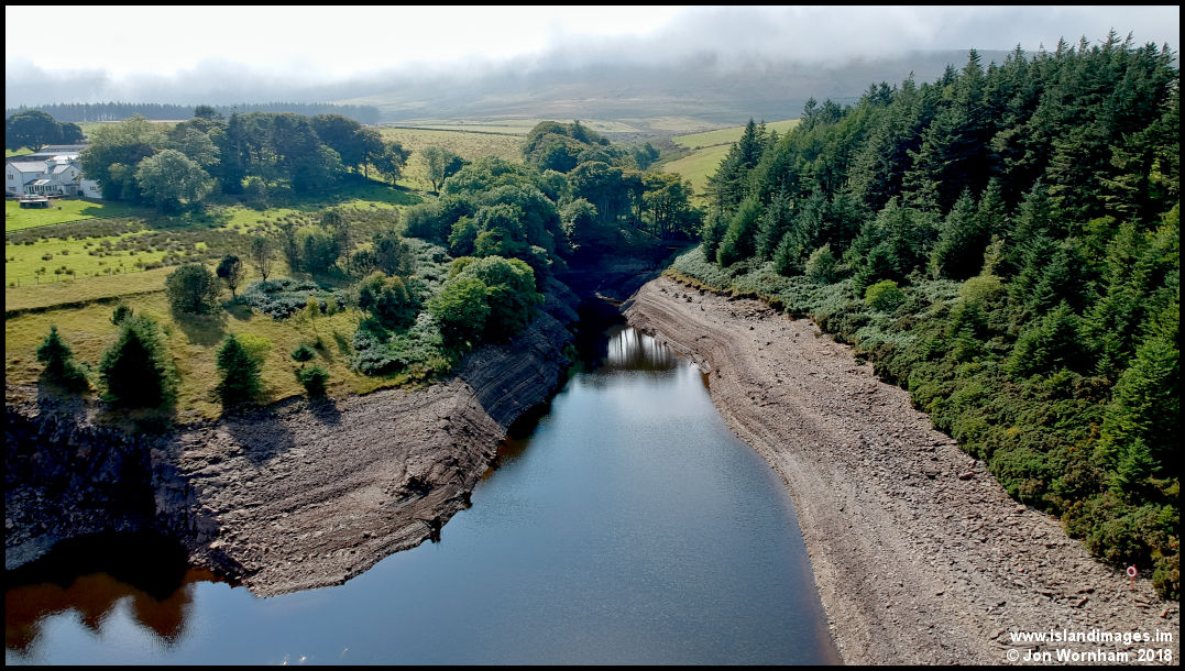 The shorter of the two western arms of the reservoir, clearly showing depleted water levels.