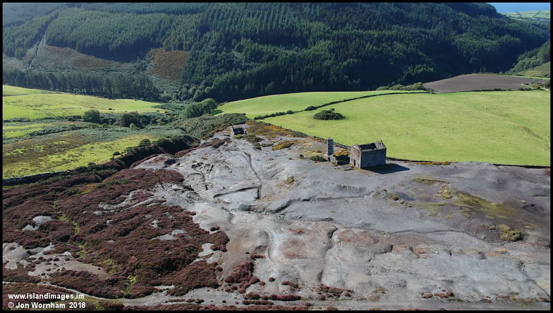 Looking over the former washing floors at Beckwith's Mine. The large building was the engine house and until recent years the chimney was much taller, but eventually fell down.