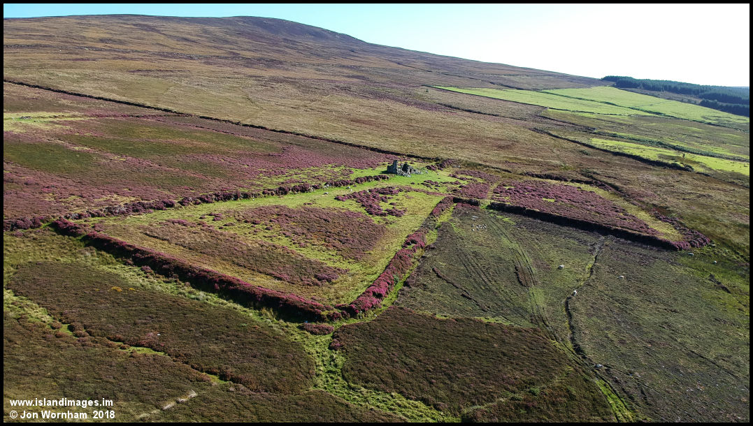 Flying back for another look at the nearby tholtan, which has an interesting shape to the nearby fields, still visible in the heather.