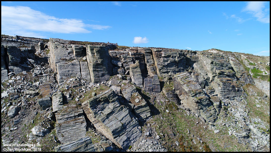 Flying down to below the cliff level for a closer look at the huge blocks of stone that make up The Chasms.