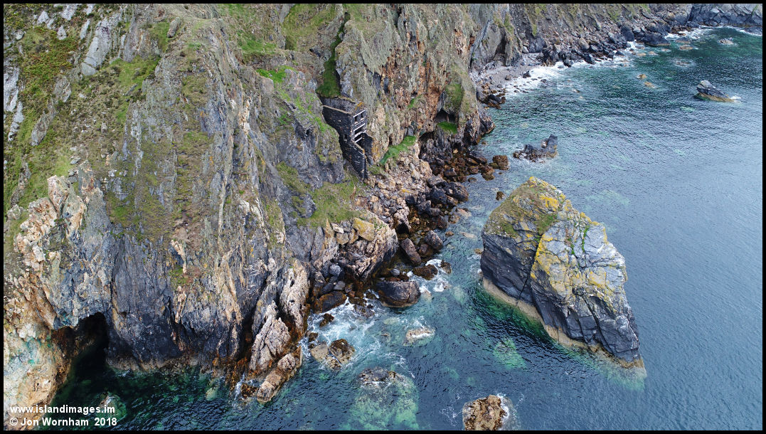 The engine house for North Bradda mine, the rock must have provided a little shelter from stormy seas but it must have been a wild place to work in westerly gales.