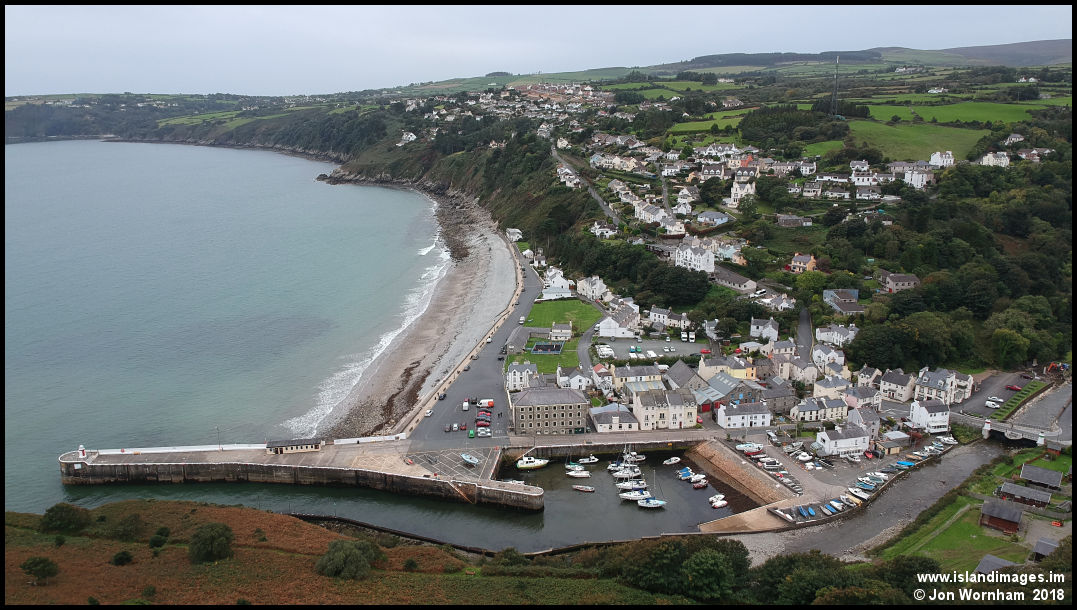 Moving to a second flying location near the top of the cape for this view over the harbour to the older part of the village.