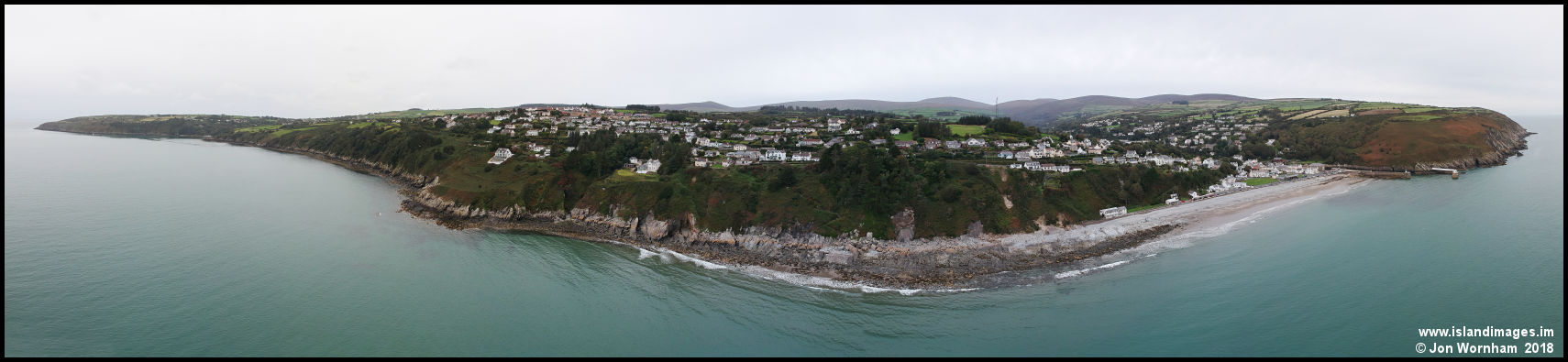 Panorama from a third flying location, on the rocks at the southern end of Laxey beach.