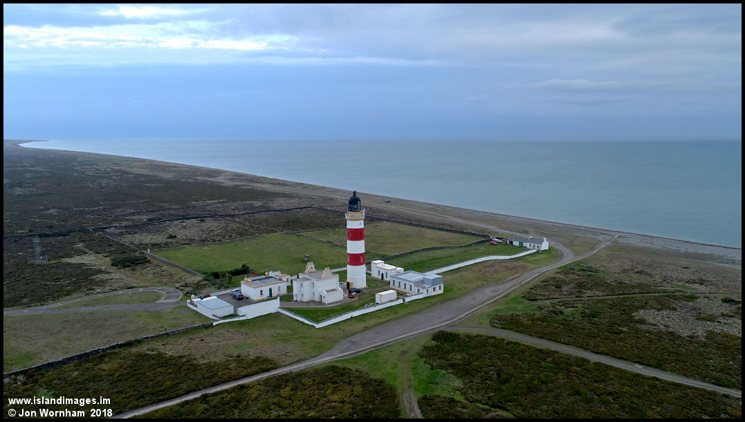 The big lighthouse at the Point of Ayre. The lighthouse is automated and the former lighthouse keepers cottages are now a private residence,