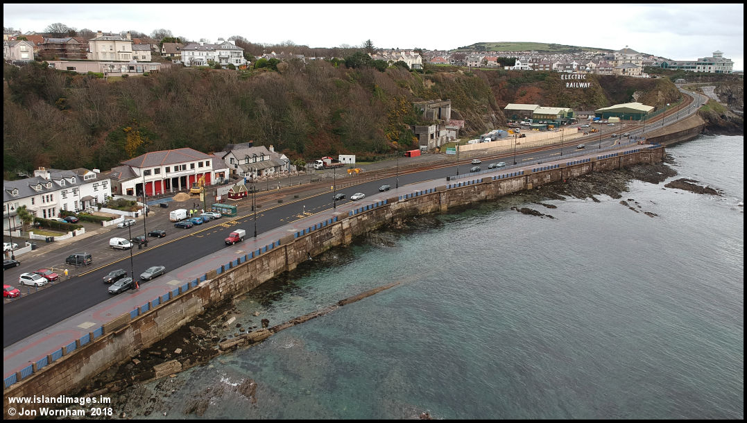The Derby Castle end of Douglas promenade, where the Horse Tramway depot building is about to be demolished.