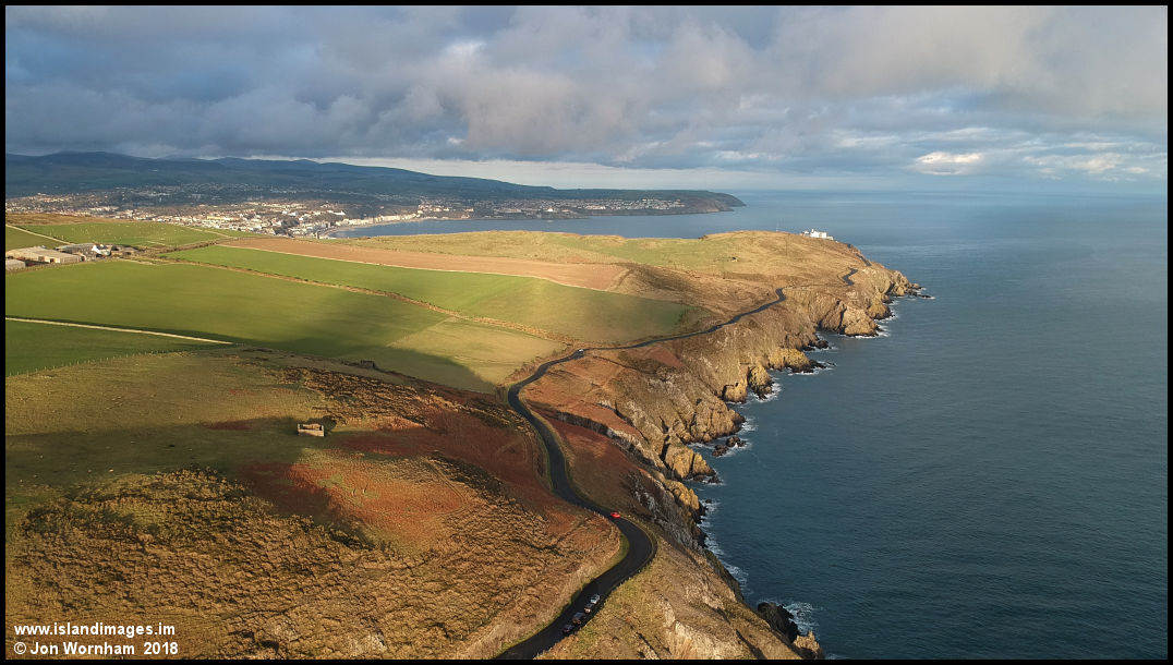 Continuing the climb to around 300ft above road level with Douglas starting to appear from behind Carnane Hill. The twisting nature of the Marine Drive is apparent when viewed from this height.