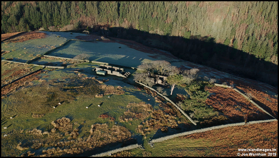 The Creggans tholtan, with frost still covering the fields not yet illuminated by the low winter sun.