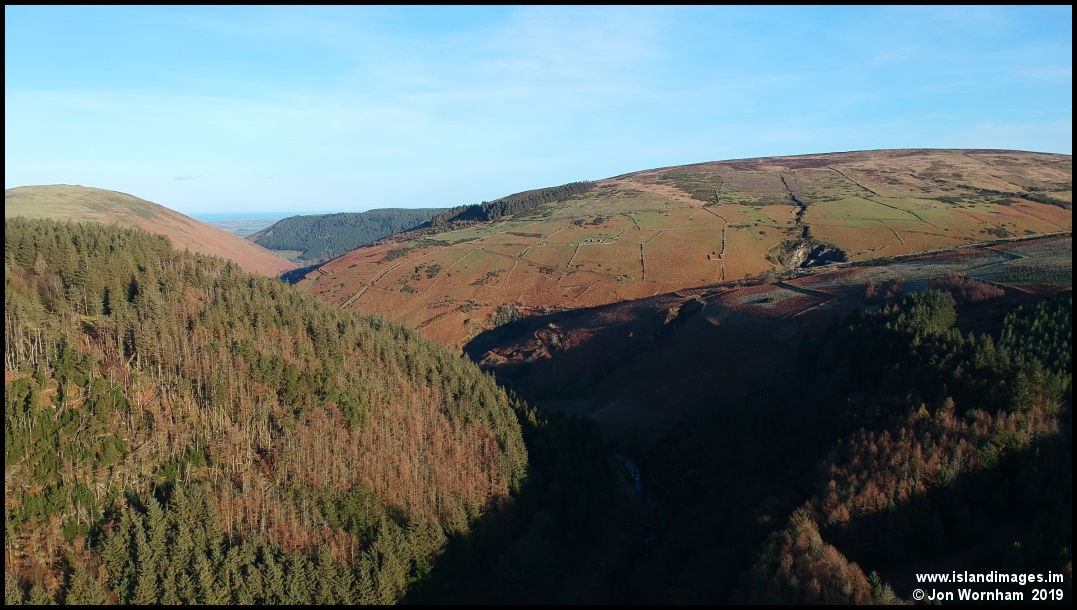 Even at twenty past eleven the sun has not reached the bottom of the valley at Tholt y Will. another tholtan, Slieaumanagh can be seen in the distance.