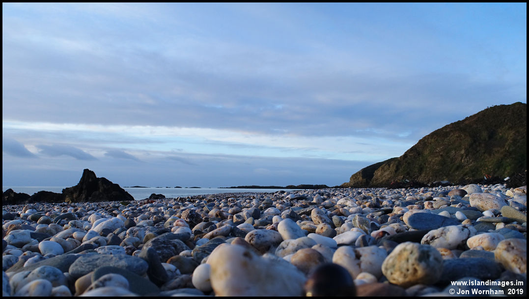 A ground level shot on the beach at Traie Vane, with the Tail of Rocks on the horizon.