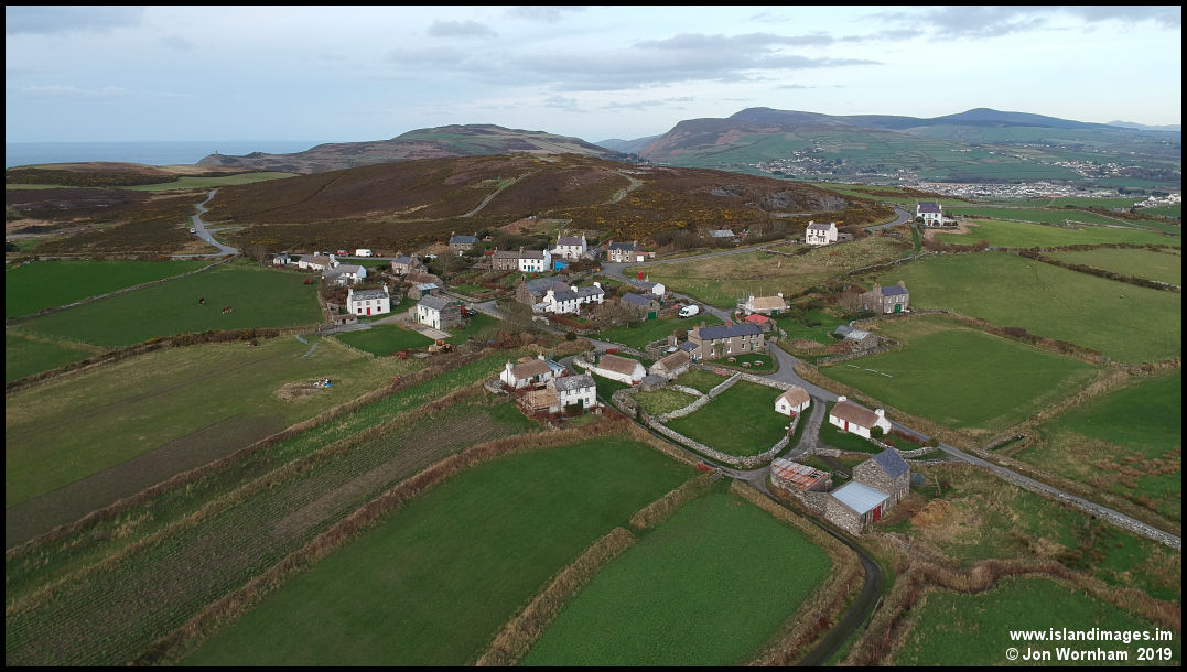 Climbing to a higher altiude for a view over Cregneash with Port Erin in the distance.