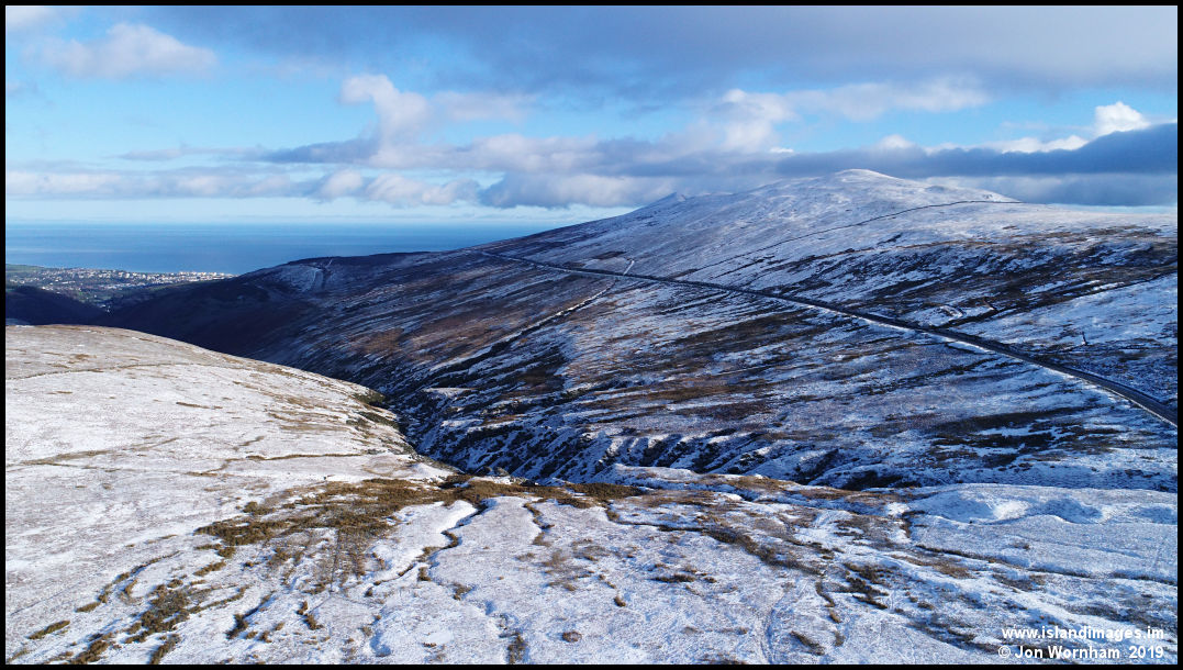 Looking over the top end of Glen Auldyn towards North Barrule, with Ramsey just visible.