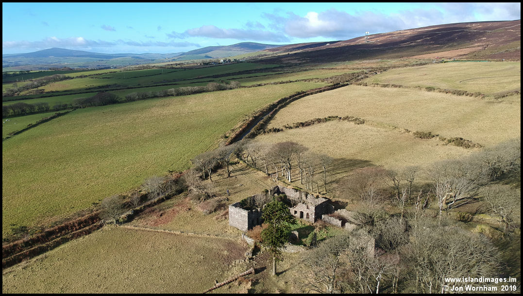 Honey Hill Farm looking west, with the Creg-ny-Baa Hotel visble across the fields.