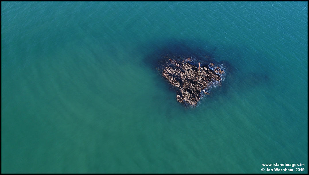 The Carrick rock, just off Port Lewaigue. The sea colour changes according the the viewing angle, looking straight down the sands below make it quite green, while at a shallower angle the sky turns it blue. Compare this with the next picture.
