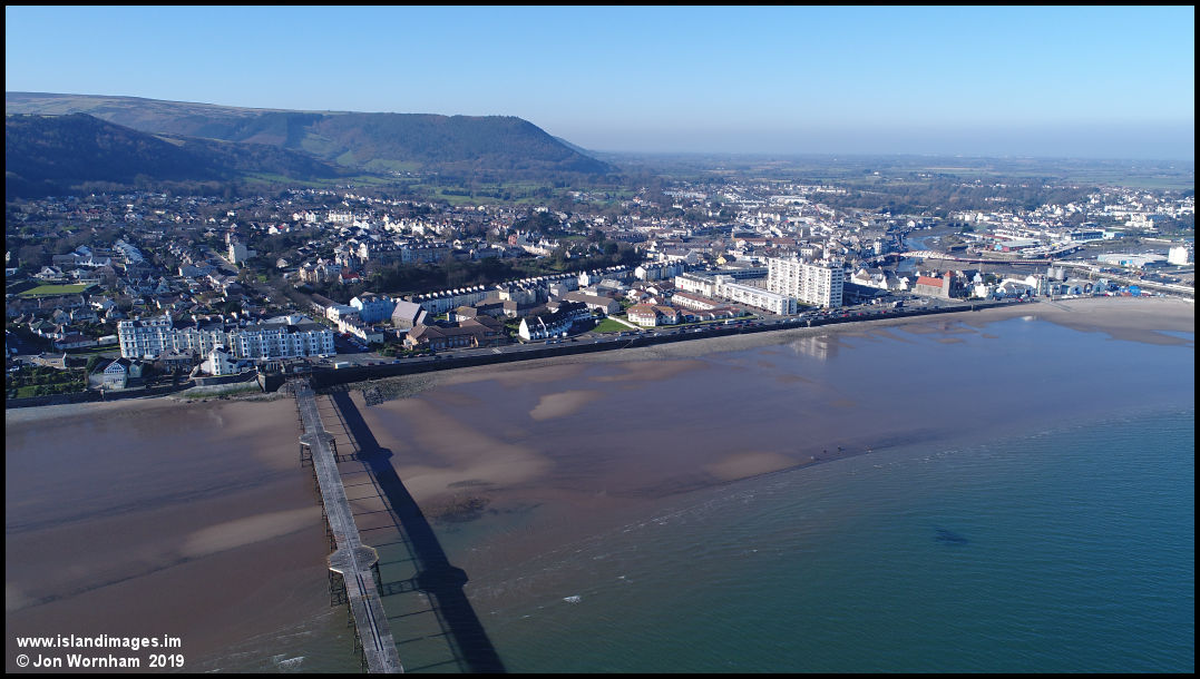 The beach between the pier and harbour breakwatwers at low tide. At high tide the water goes all the way to the promenade sea wall.