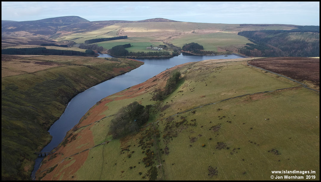 The eastern leg of Sulby Reservoir, where the young Sulby River flows into it.