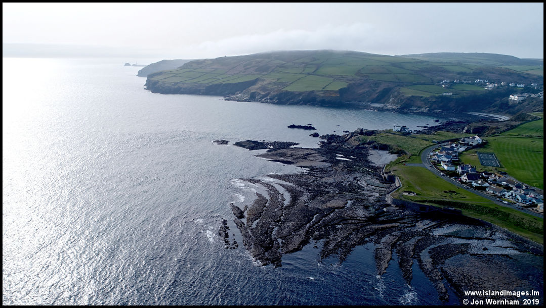 Moving on to the second flying location for this view over Kallow Point to Perwick Bay. Part of the Calf of Man and the Chicken Rock lighthouse can just be seen in the far distance.