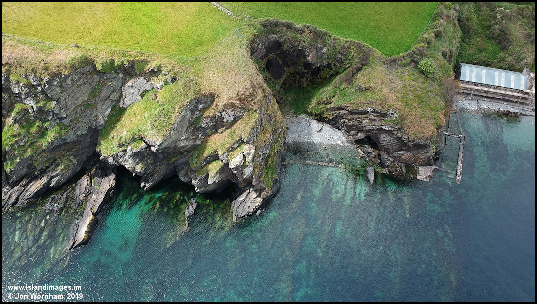 The area of the 'Smugglers cave' and cafe. The foundations of the building can still be seen in the stoney beach of the inlet.