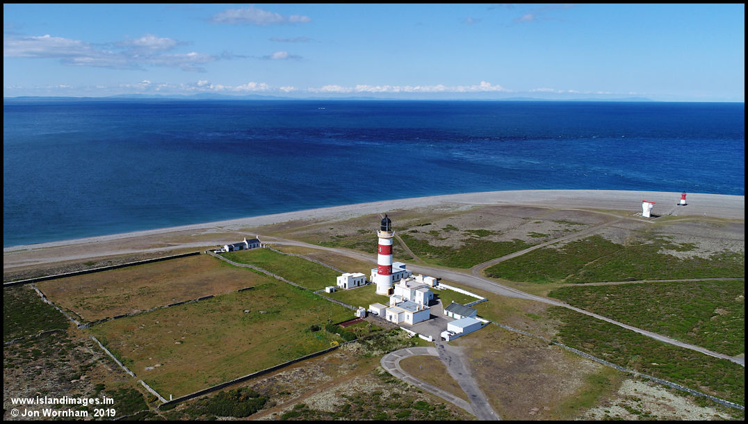 The lighthouses and foghorn at the Point of Ayre, with the mountains of southern Scotland just visible on the horizon.