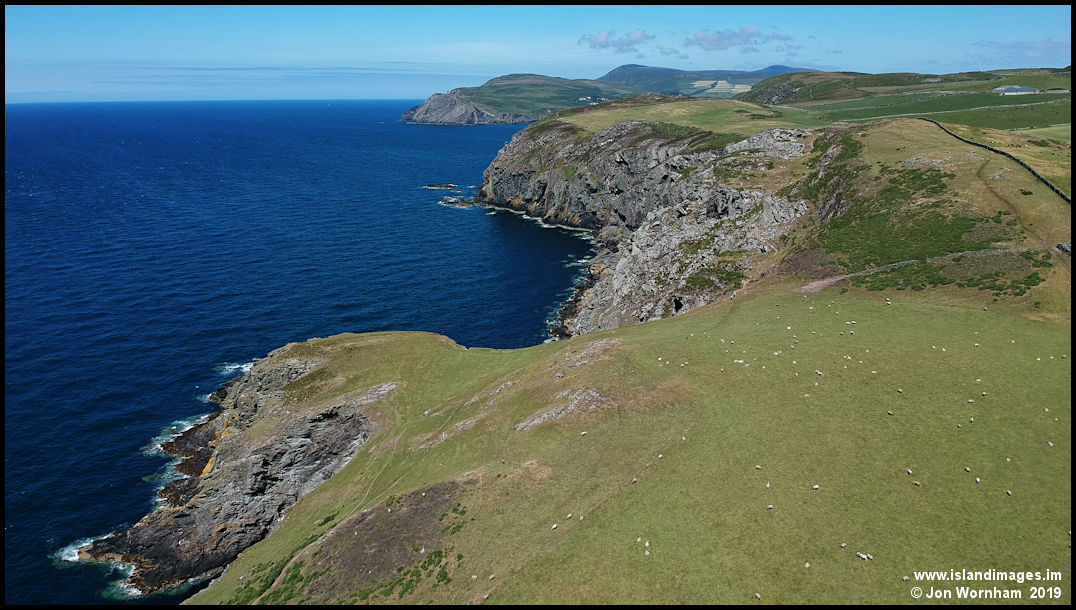 Looking north along the west coast with Bradda Head in the distance.