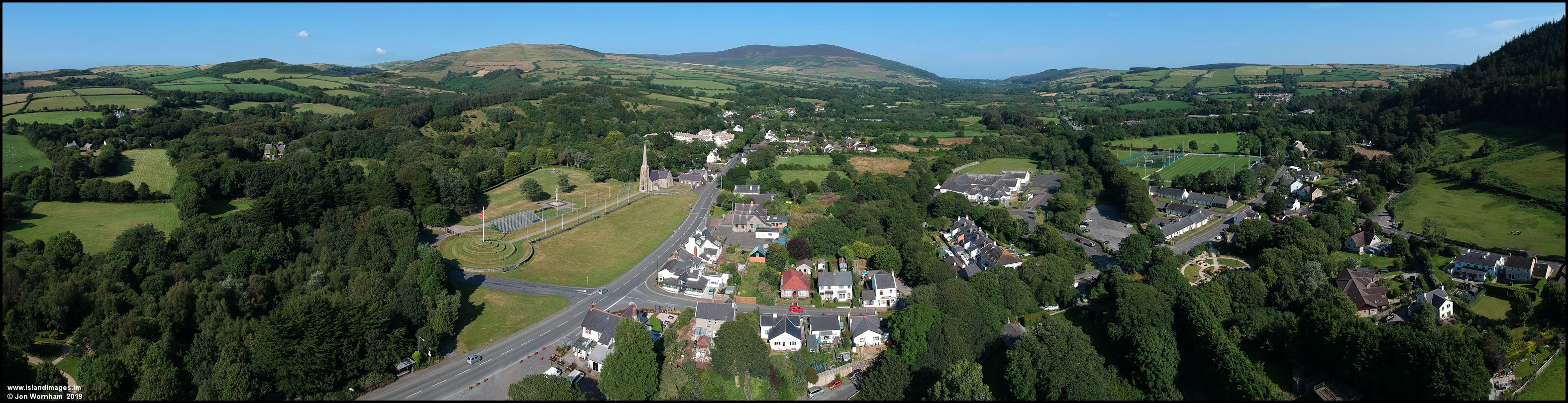 Panorama looking east over St John's village,with Tynwald Hill on the left of picture.
