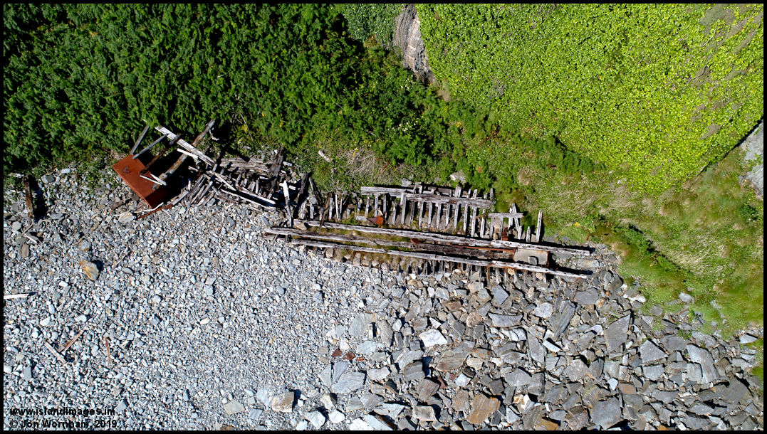 Taking the drone in close and low for a better look at the wreck, seems to be quite a reasonable sized wooden ship with some sort of metal structure on the left.