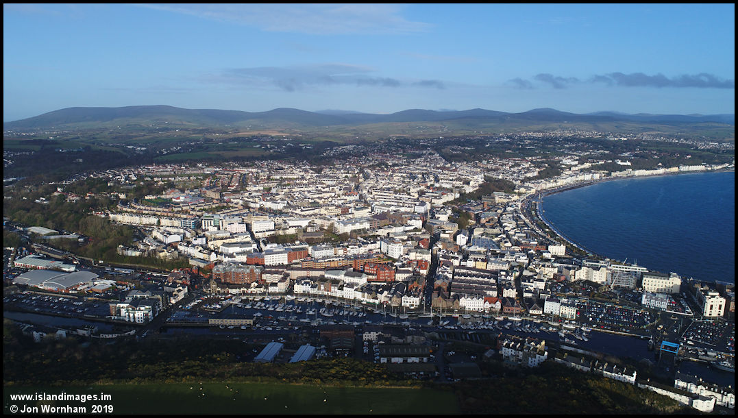Looking across the inner harbour to the central part of Douglas. Over the years the town has expanded greatly to the west and north.