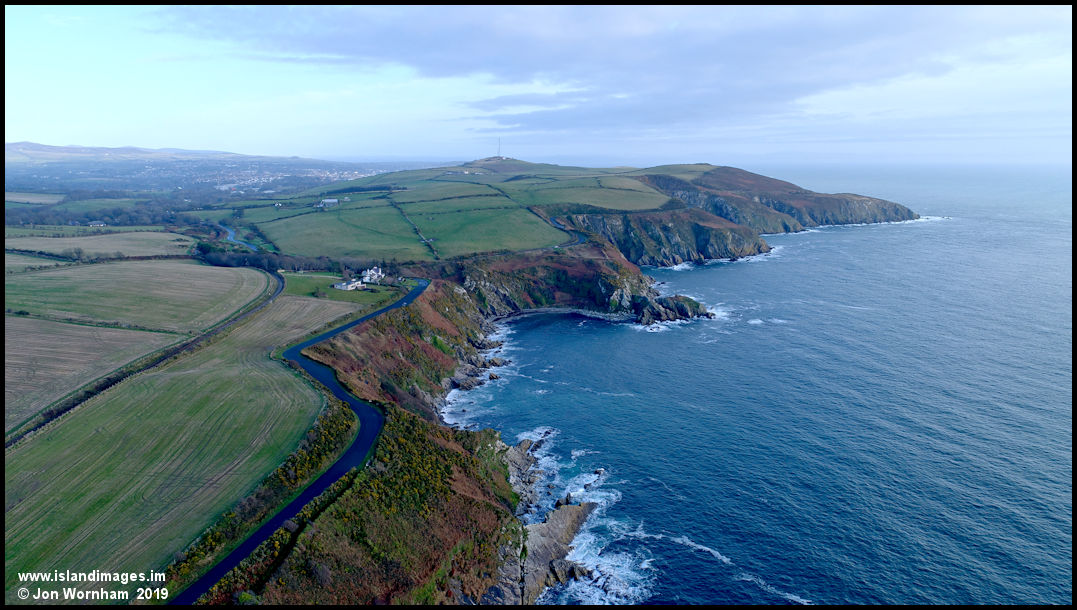 Looking north along the coastline with Port Soderick just behind the camera, past Keristal and on to Little Ness with Douglas just visible in the distance.